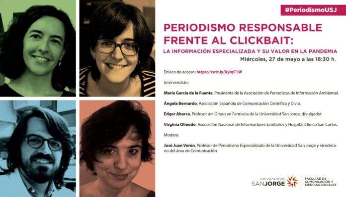 La Facultad de Comunicación y Ciencias Sociales de la Universidad San Jorge (USJ) realiza, este miércoles, a las 18.30 horas, un nuevo seminario gratuito con el título ‘Periodismo responsable frente al clickbait: la información especializada y su valor en la pandemia‘.