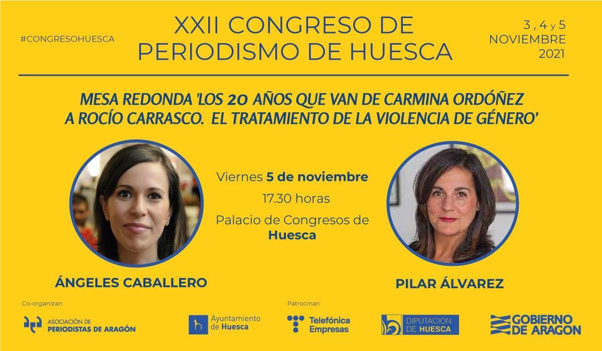 ‘Los 20 años que van de Carmina Ordóñez a Rocío Carrasco. El tratamiento de la violencia de género’ es el título de la mesa redonda que compartirán las periodistas Ángeles Caballero (El Confidencial) y Pilar Álvarez (El País), en el XXII Congreso de Periodismo de Huesca, el viernes 5 de noviembre. Una lacra social que se ha cobrado la vida de más de 1.110 mujeres en España desde 2003.