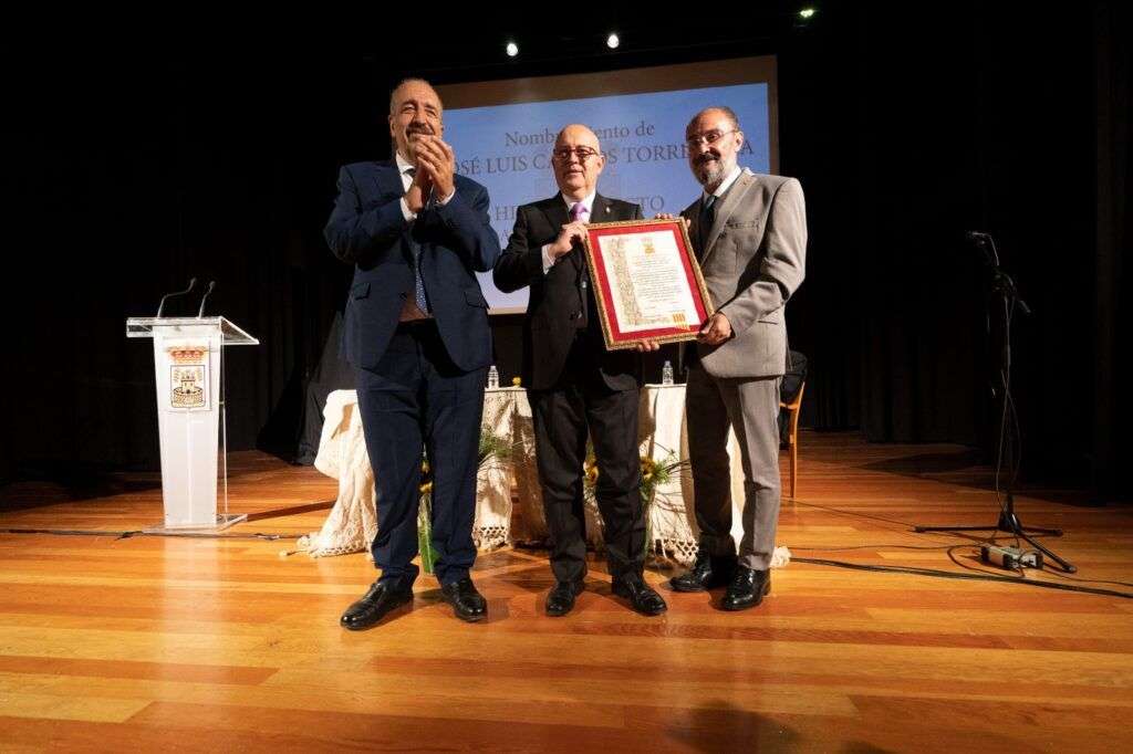 Conocidas personalidades de la política, la sociedad y la cultura arroparon a José Luis Campos en este gran día. En el acto, desarrollado este viernes por la tarde en el marco de las fiestas patronales, intervinieron además de Campos y Rando, el cineasta Santiago Segura y el expresidente de Extremadura, Juan Carlos Rodríguez Ibarra. Su amigo y paisano, el periodista y escritor Luis Alegre, se encargó de loar su trayectoria. Y cerró el acto el presidente de Aragón, Javier Lambán.
