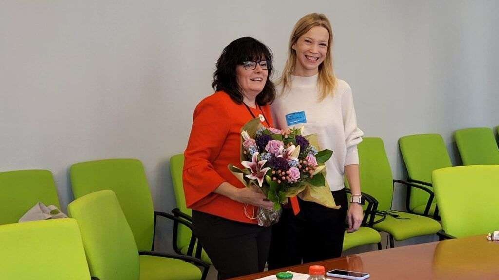 También compartió un encuentro con los miembros de la Asociación de Periodistas de Aragón la responsable de prensa española en la Dirección General de Comunicación del Parlamento Europeo, Estefanía Narrillos. Narrillos mostró a los profesionales de la comunicación todos los servicios de comunicación que posee el Parlamento Europeo, como la sala de ruedas de prensa, los platós de televisión, los diferentes espacios para conexiones de televisión, el espacio habilitado para que los periodistas puedan desarrollar su trabajo y el photocall.