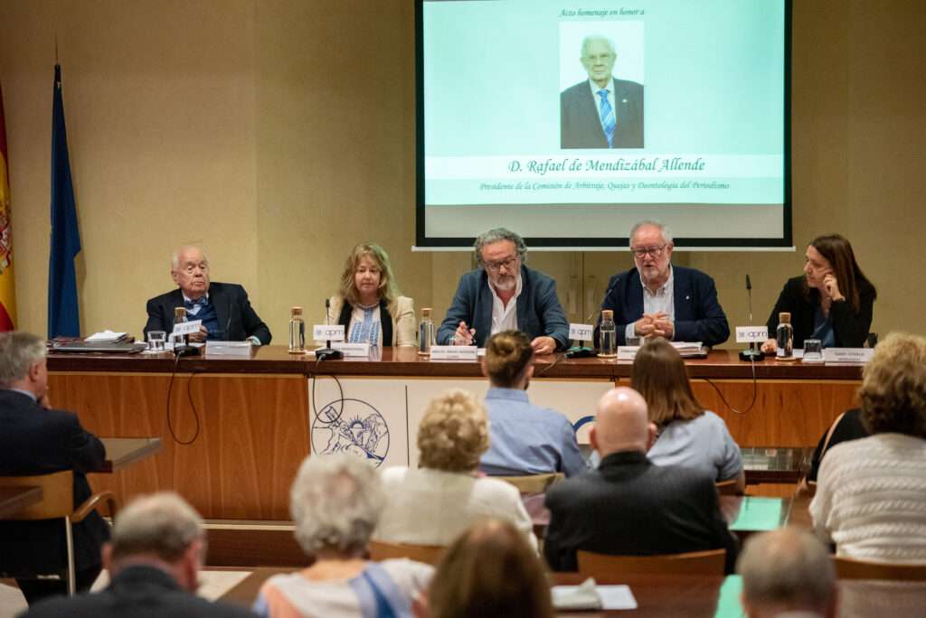 El Patronato de la Fundación y la Comisión de Arbitraje, Quejas y Deontología del Periodismo celebró un homenaje en honor a Rafael de Mendizábal, quien fuera el presidente de dicha Comisión hasta su fallecimiento a principios del pasado mes de marzo. El jurista y exmagistrado ocupaba el cargo desde el año 2015, cuando sustituyó a Manuel Núñez Encabo.