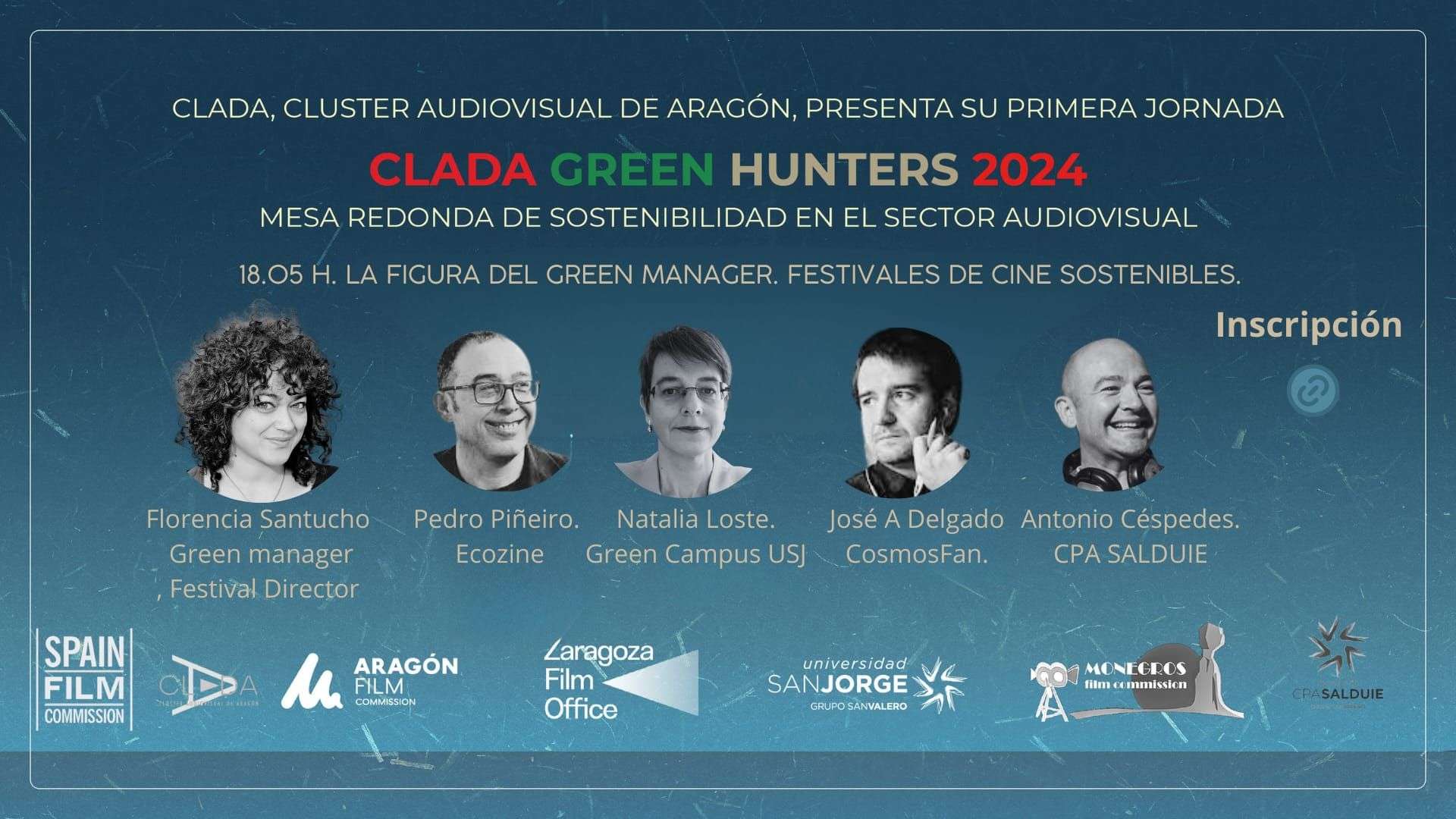 El Clúster Audiovisual celebra su primera Jornada Clada Green Hunters 2024, una mesa de Sostenibilidad de la Industria Audiovisual Española, evento destacado en el marco del festival internacional Ecozine de Zaragoza que tendrá lugar el 11 de marzo de 2024, de 17:00 a 19:00 horas, en la sede del Grupo San Valero, en Plaza Santa Cruz s/n, Zaragoza.