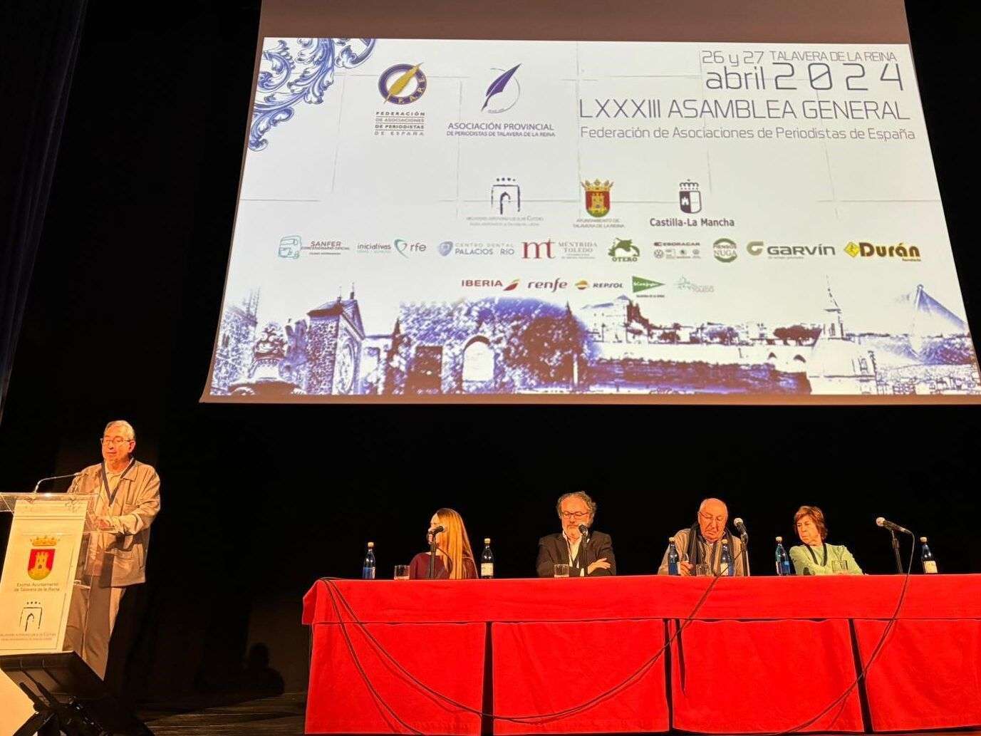 La LXXXIII Asamblea General que la FAPE está celebrando este 27 de abril organizada por la Asociación Provincial de Periodistas de Talavera (APTA), cuenta con el patrocinio institucional de la Junta de Comunidades de Castilla-La Mancha y del Ayuntamiento talaverano y con la colaboración del Organismo Autónomo Local de Cultura del Ayuntamiento. Además, está patrocinada por Repsol, Iberia, Renfe y las siguientes empresas locales: Sanfer Concesionario Oficial, Iniciativas rfe, Centro Dental Palacios del Río, Cárnicas Otero, Eboracar, Piensos Nuga, Grupo Garvín y Durán Ferretería, con la colaboración de la Denominación de Origen Protegida Méntrida Toledo, El Corte Inglés Talavera, la Diputación de Toledo y la Asociación de Amigos del Museo Ruiz de Luna.