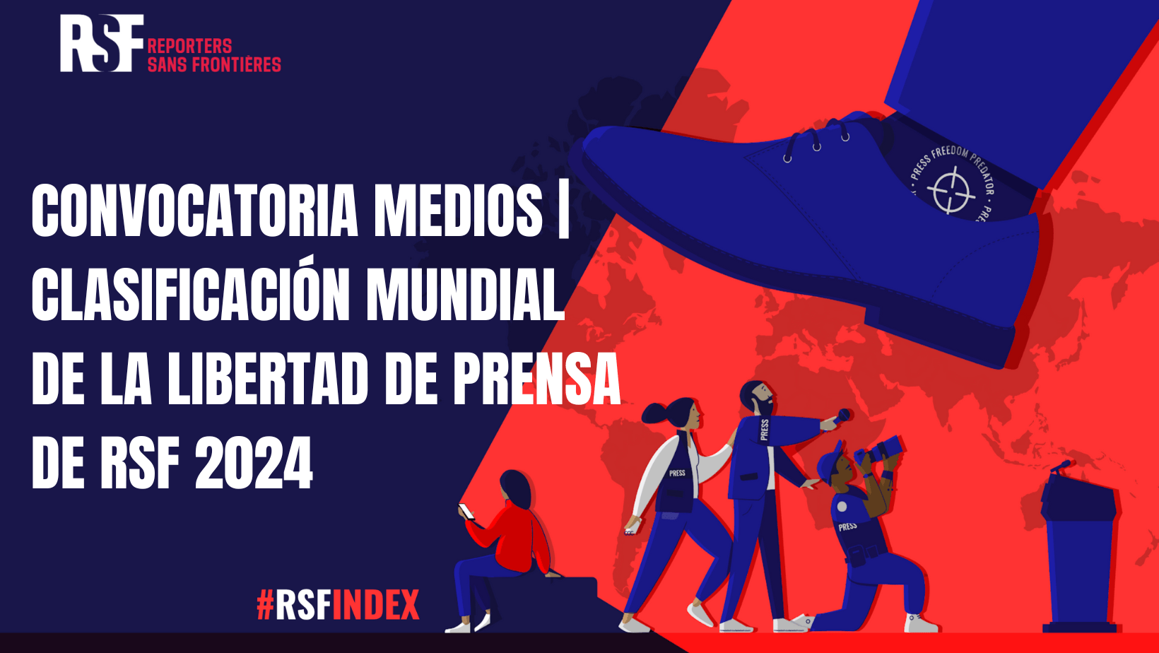 Reporteros Sin Fronteras (RSF) España presenta la Clasificación Mundial de la Libertad de Prensa 2024 el viernes 3 de mayo, Día Mundial de la Libertad de Prensa, en Zaragoza a las 10.30 horas, en el Edificio Grupo San Valero, Universidad San Jorge (plaza de la Santa Cruz, Zaragoza). El acto podrá seguirse también por streaming.