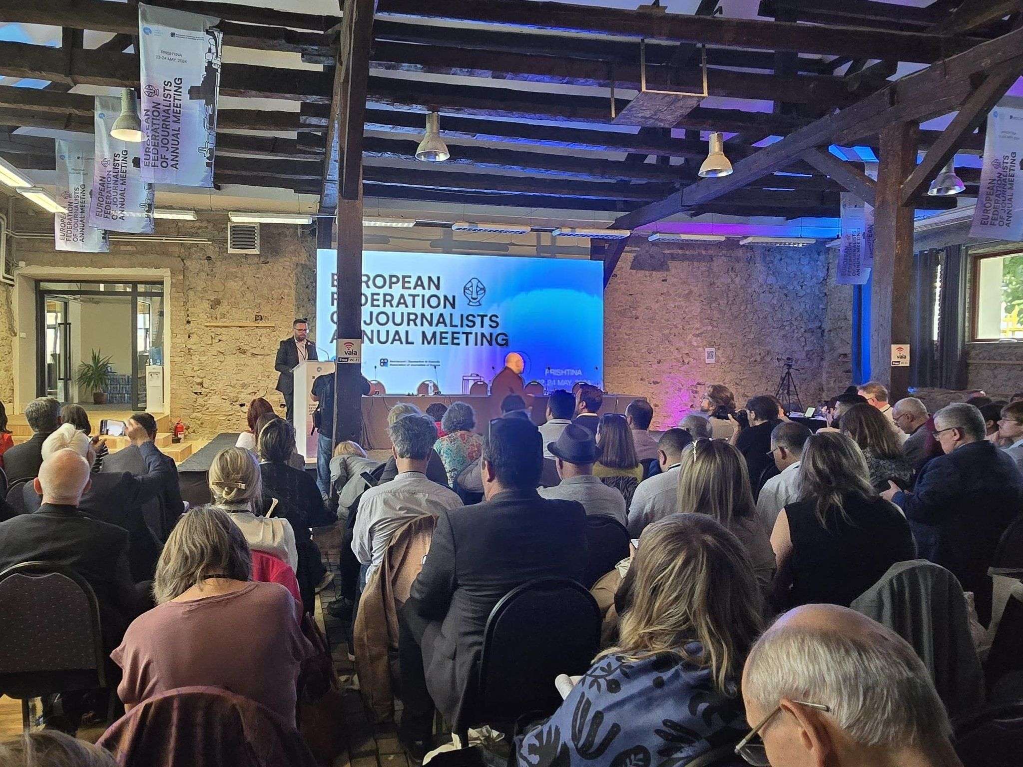 Con el lema ‘Periodismo en tiempos de guerra’, se desarrolló en Prishtina (Kosovo) la Asamblea Anual 2024 de la EFJ que comenzó con un minuto de silencio en memoria de los 109 periodistas asesinados en la guerra de Gaza, según los datos de la Federación Internacional de Periodistas (FIP). Se abordaron asuntos candentes para el periodismo en Europa, como las presiones contra la libertad de prensa y amenazas a los informadores en los países balcánicos y del Este de Europa, como Hungría, así como los riesgos de la puesta en práctica de Inteligencia Artificial en la elaboración de contenidos y la proliferación de las llamadas SLAPP (iniciativas judiciales contra la participación pública, en su traducción del inglés).