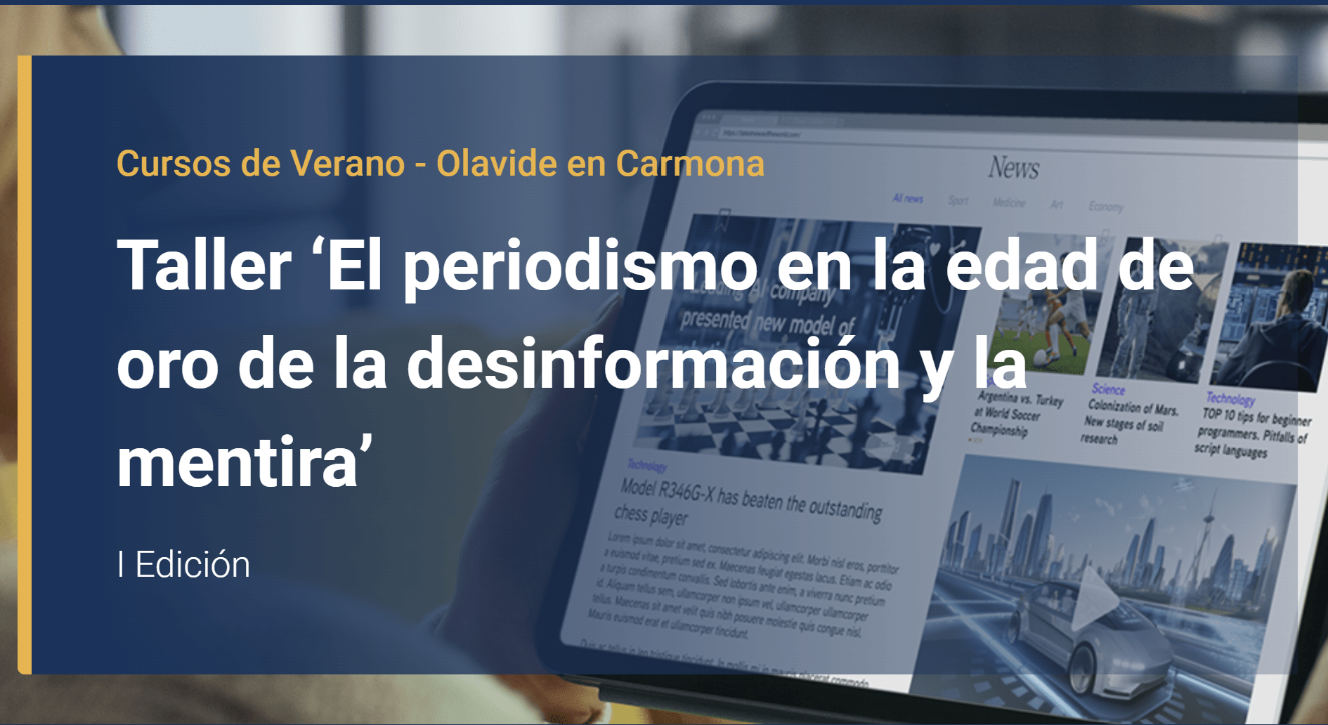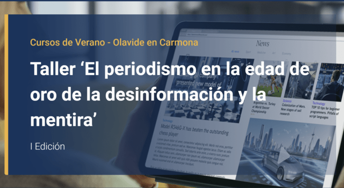 En virtud del acuerdo firmado entre la Asociación de la Prensa de Sevilla y la Universidad Pablo Olavide, diez miembros de la FAPE podrán optar de manera gratuita a la realización del taller ‘El periodismo en la edad de oro de la desinformación y la mentira’ de forma presencial o telemática, que se celebrará el martes 18 junio en la sede de la UPO en Carmona (Casa Palacio de los Briones. Calle Ramón y Cajal, 15), en sesiones de mañana y tarde.