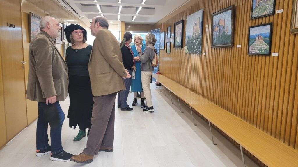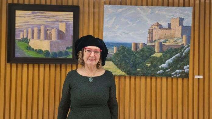 La sede de Asociación y el Colegio Profesional de Periodistas de Aragón acoge desde este viernes la exposición pictórica “Castillos en el aire… de Aragón”, de María Gómez y Patiño, artista y doctora en Periodismo. La muestra, que está abierta al público, se ha presentado en la sala Luis Granell de la entidad profesional con la presencia de la autora.