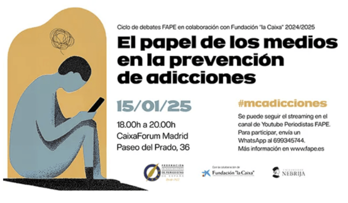 La jornada podrá seguirse presencialmente, con entrada libre hasta completar el aforo, en CaixaForum (Paseo del Prado, 36, de Madrid); vía streaming, a través de Periodistas FAPE, el canal de YouTube de la Federación, y en X, con la etiqueta #mcadicciones. También se puede participar en el posterior turno de preguntas enviando un WhatsApp al 699 345 744.