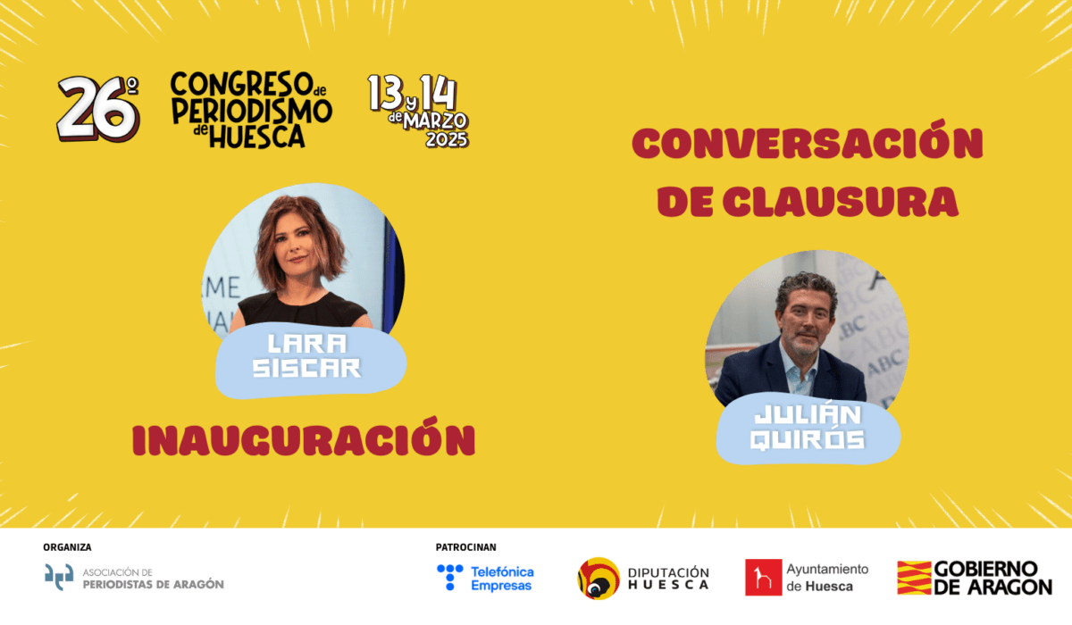El Congreso de Periodismo, que se celebra los días 13 y 14 de marzo en el Palacio de Congresos de Huesca, será inaugurado por la presentadora de TVE, Lara Siscar, y clausurado por el director del diario ABC, Julián Quirós.