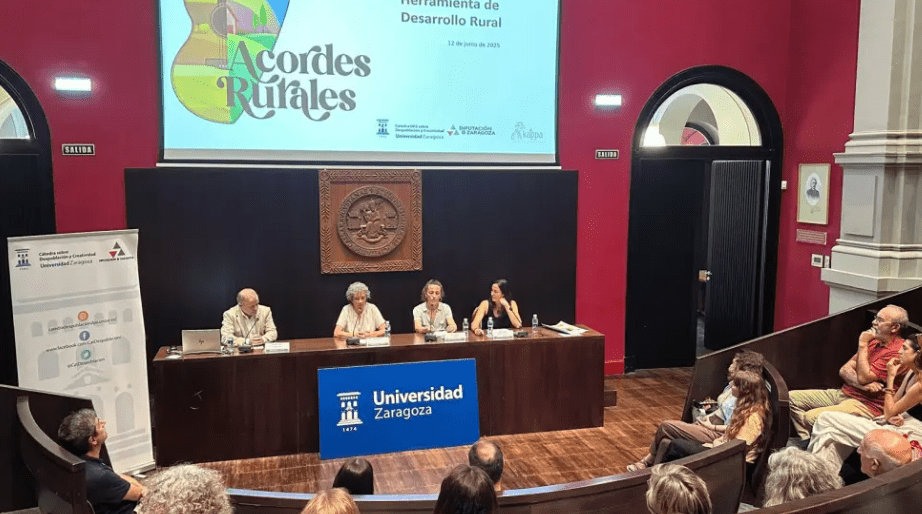 La cultura como elemento dinamizador del medio rural y motor de su desarrollo fue el eje de la jornada celebrada este jueves 12 de junio en el Aula Magna del Paraninfo de Zaragoza. Titulada “La cultura como herramienta de desarrollo rural”, la cita fue organizada por la Cátedra DPZ de Despoblación y Creatividad, en colaboración con la Universidad de Zaragoza y con la participación del videpodcast y proyecto transmedia Acordes Rurales.