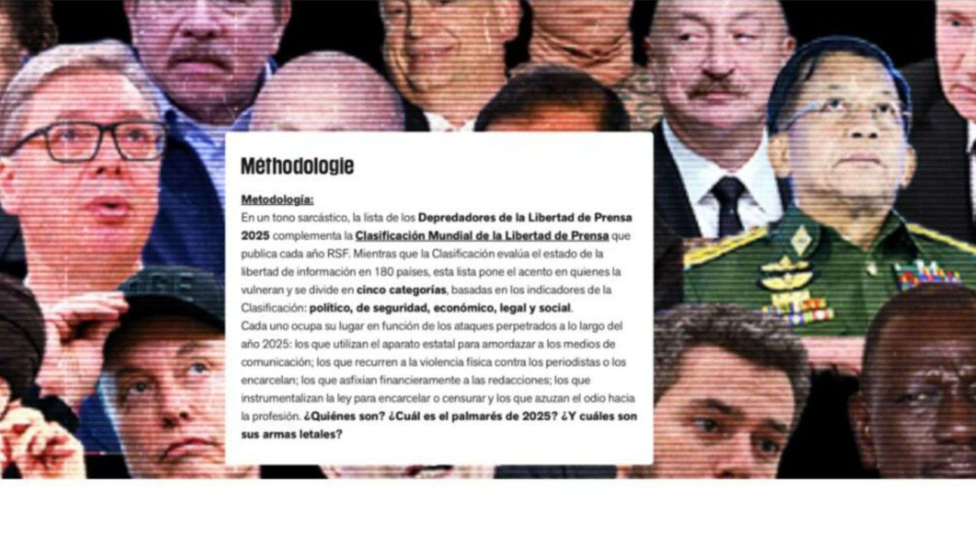 Los depredadores de la libertad de prensa asesinan, censuran, encarcelan y agreden a los periodistas, asfixian a las redacciones, denigran la profesión o utilizan sus propios códigos para manipular la información con fines propagandísticos. En 2025, los profesionales de la información han sido el blanco de técnicas depredadoras cada vez más diversificadas.