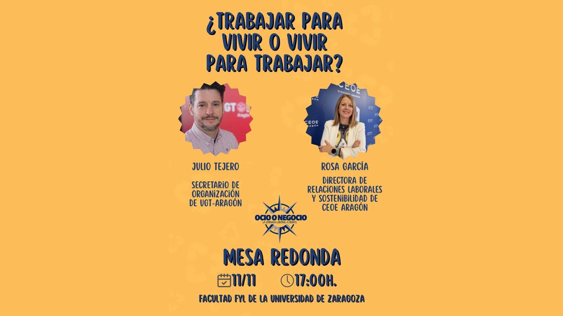 Estudiantes de 4.º de Periodismo organizan una mesa redonda sobre uno de los temas más destacados de esta legislatura: la reducción de la jornada laboral de las 40 a las 37,5 horas. Este martes 11 de noviembre, a las 17:00, la el Secretario de Organización de UGT-Aragón, Julio Tejero, y la directora de Relaciones Laborales y Sostenibilidad de CEOE Aragón, Rosa García, debatirán en directo en el estudio de televisión de la Facultad de Filosofía y Letras (Edificio B) sobre las consecuencias laborales, económicas y sociales de esta medida.