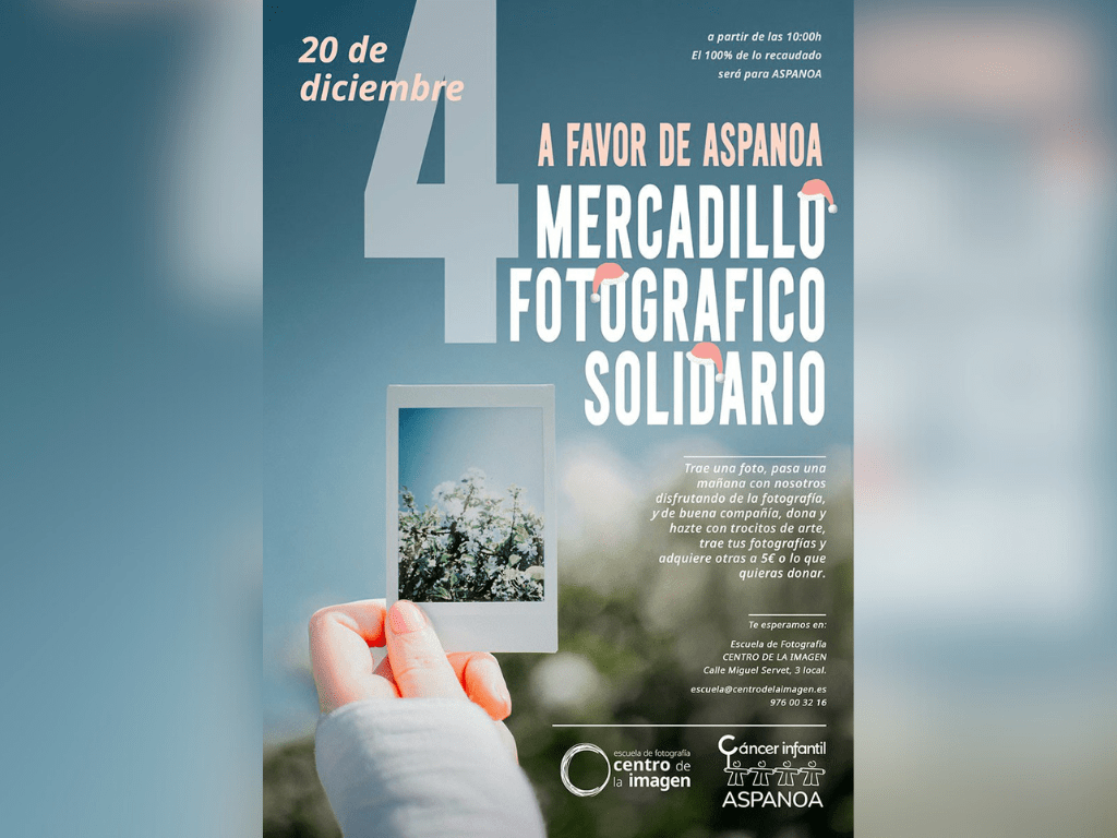 La escuela de fotografía Centro de la Imagen de Zaragoza se enorgullece de organizar el IV Mercadillo Fotográfico Solidario a favor de Aspanoa (Asociación de Padres de Niños con Cáncer de Aragón). Este evento, que se celebrará el sábado 20 de diciembre de 2025 en horario matinal, representa una oportunidad única para unir la pasión por la fotografía con una noble causa.