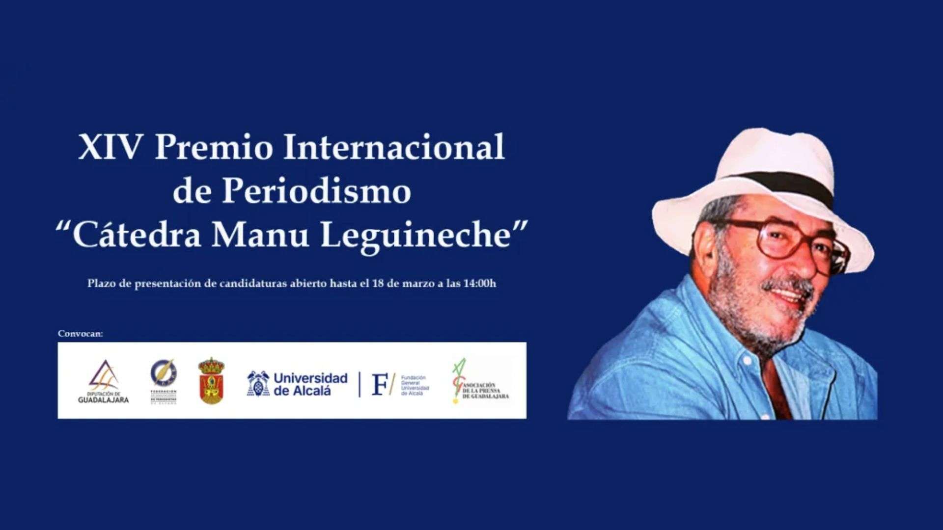 La FAPE, la Universidad de Alcalá (UAH), la Diputación Provincial de Guadalajara, el Ayuntamiento de Brihuega, la Asociación de la Prensa de Guadalajara y la Fundación General de la Universidad de Alcalá, convocan el XIV Premio Internacional de Periodismo “Cátedra Manu Leguineche”, con el que se pretende honrar la figura de aquellos periodistas cuya trayectoria sea destacable por su independencia, rigor, respeto a la verdad y defensa de la libertad de información, así como de aquellas instituciones o medios de comunicación que hayan destacado en estos valores.