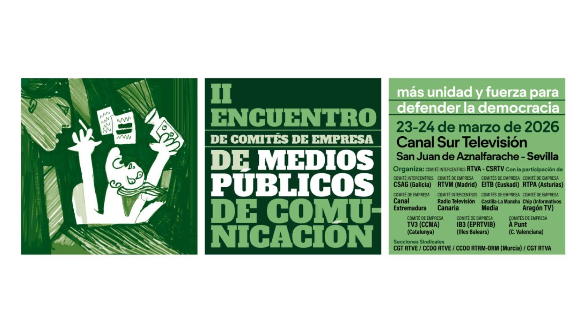 La Plataforma RTVs Públicas en Lucha, constituida en marzo de 2025 en Santiago de Compostela, ha concluido el II Encuentro de Comités de empresa de Medios Públicos de Comunicación, que reunió este lunes y martes en Sevilla a más de 80 representantes de las trabajadoras de radios y televisiones públicas de todo el estado.