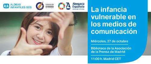 Aldeas Infantiles SOS presenta el miércoles 27 de octubre su informe ‘La infancia vulnerable en los medios de comunicación’ 2020, que, como en años anteriores, ha elaborado en colaboración con la FAPE y el Consejo General de la Abogacía Española. El acto podrá seguirse presencialmente en la Biblioteca de la Asociación de la Prensa de Madrid (APM), previa inscripción, a las 11.00 horas y, también en directo, vía streaming.